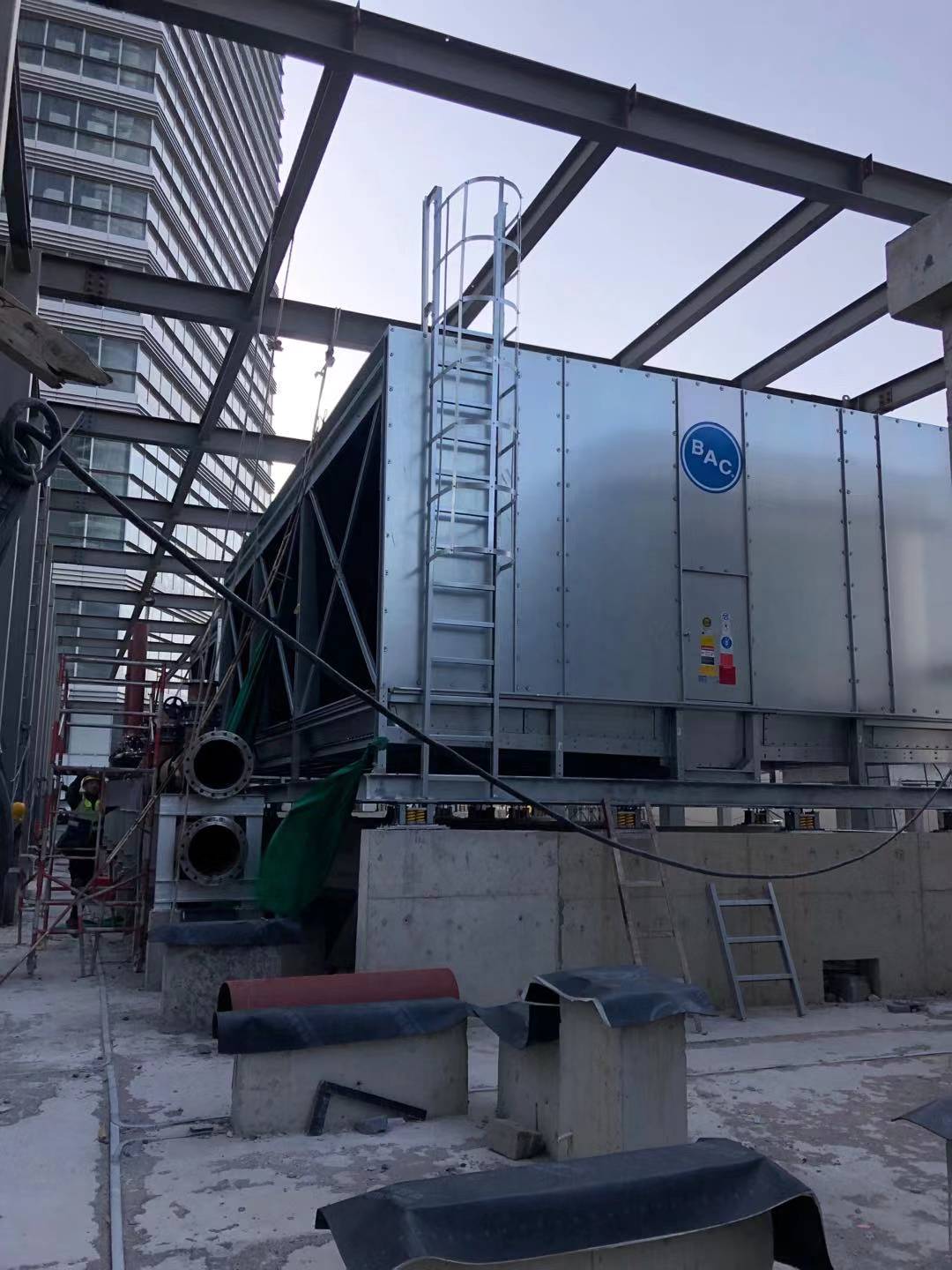 青島華邑酒店選用吳江金諾高品質(zhì)彈簧減振器配合工程師精確的選型計算,完美解決了冷卻塔振動低頻噪音問題。